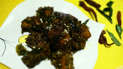 a non stick pan add oil ,hand full of curry leaves fry till crispy
